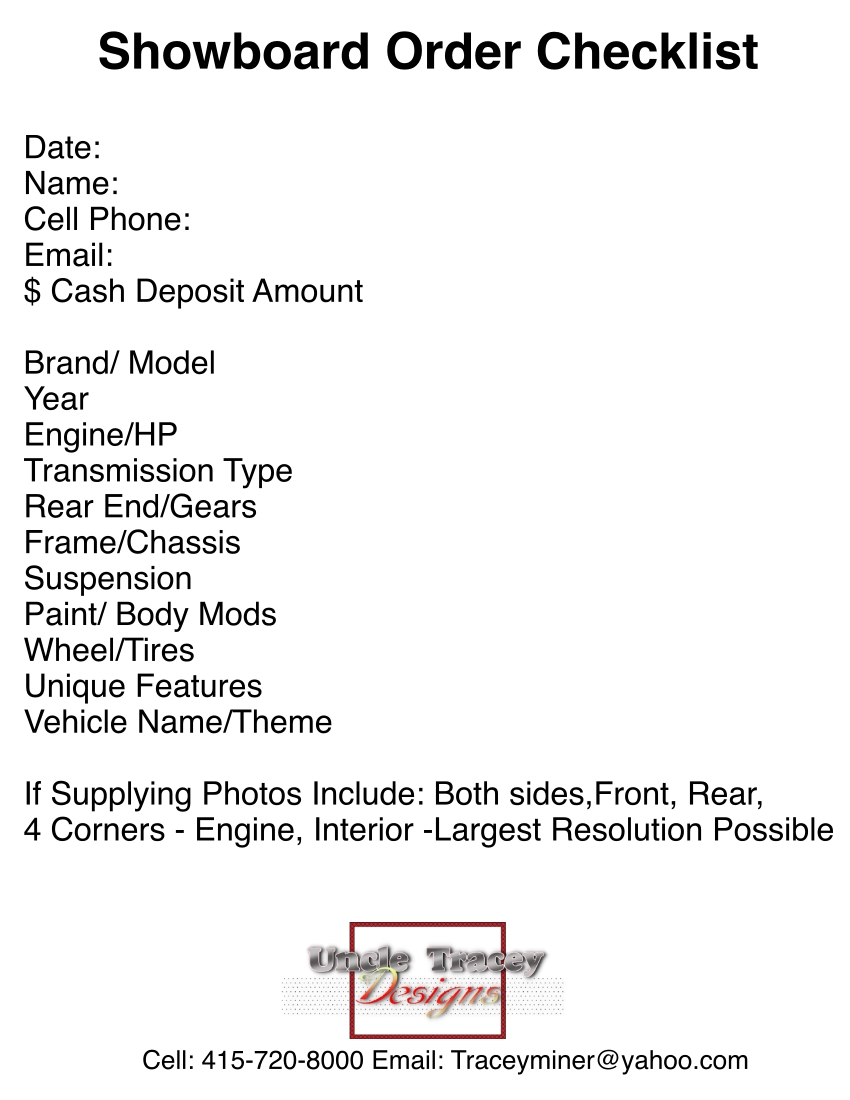 At Uncle Tracey Designs, we specialize in graphic design tailored for car enthusiasts especially in the area of car show promotions and showboards. With years of experience in corporate branding and logo creation, we bring your visions to life.
